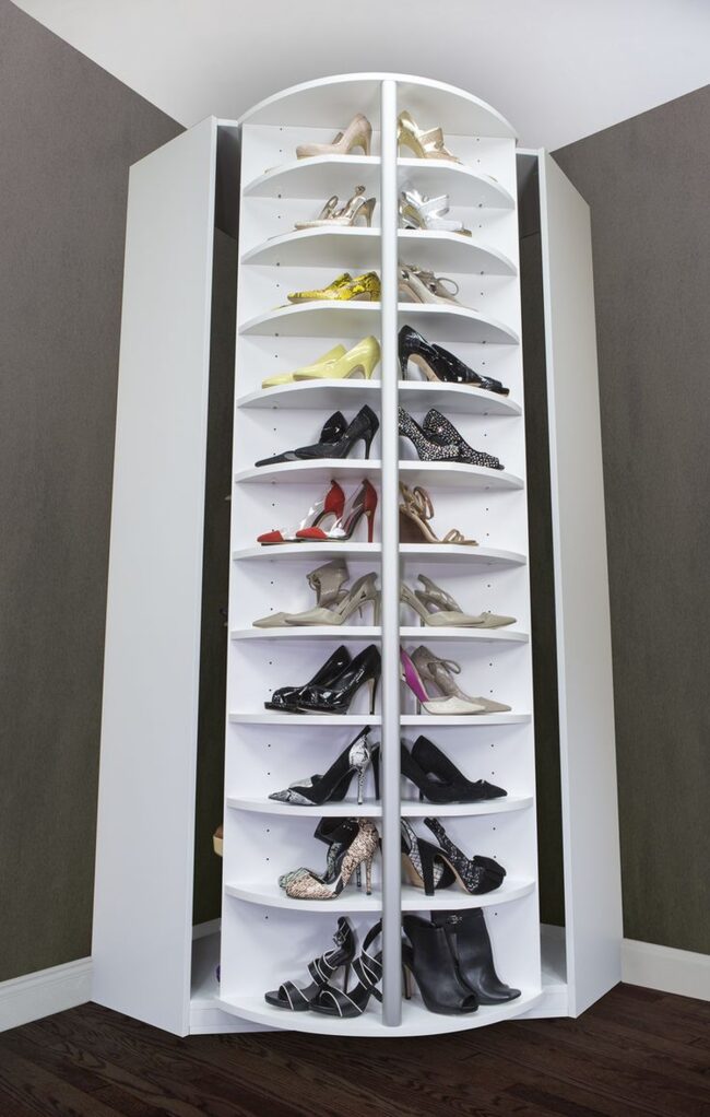 Shoe lovers dream of rotating shelves that showcase their prized footwear collection with effortless style.