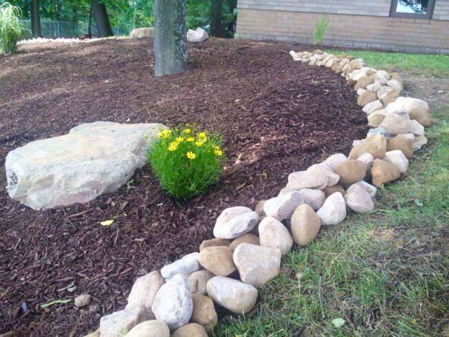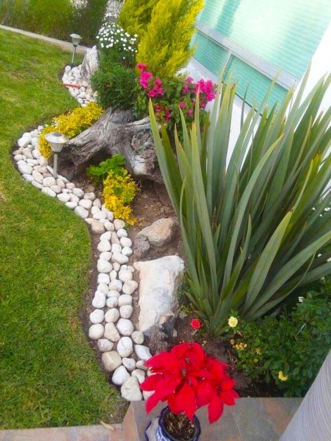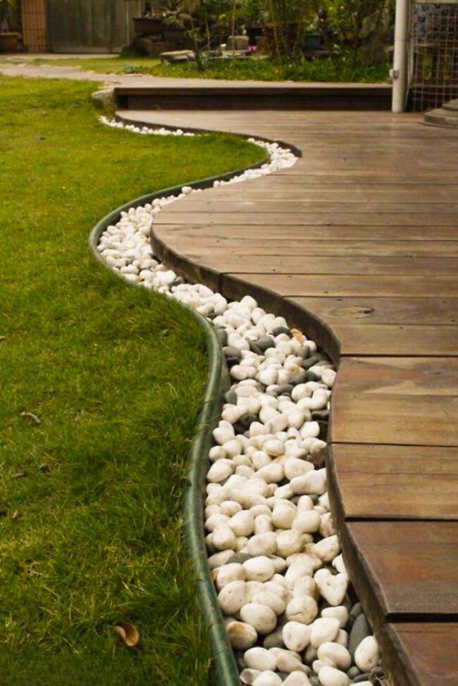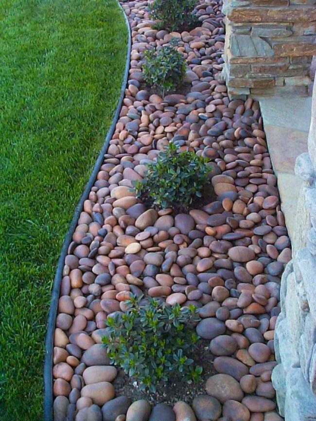 Garden borders with river stones elevate landscape design through elegant simplicity and natural charm.