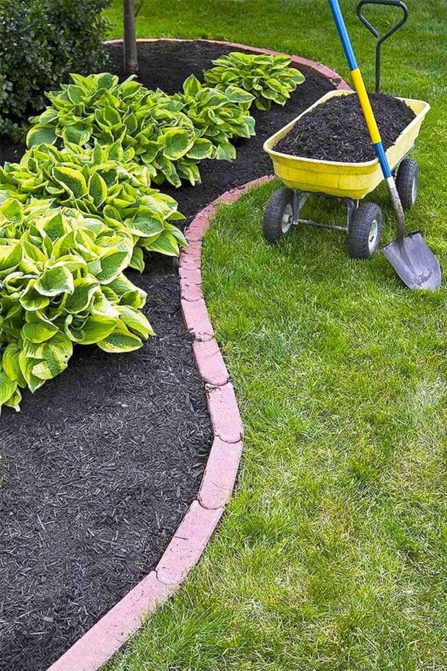Landscape designers recommend spreading mulch two to three inches thick around plant bases for optimal growth and visual appeal.