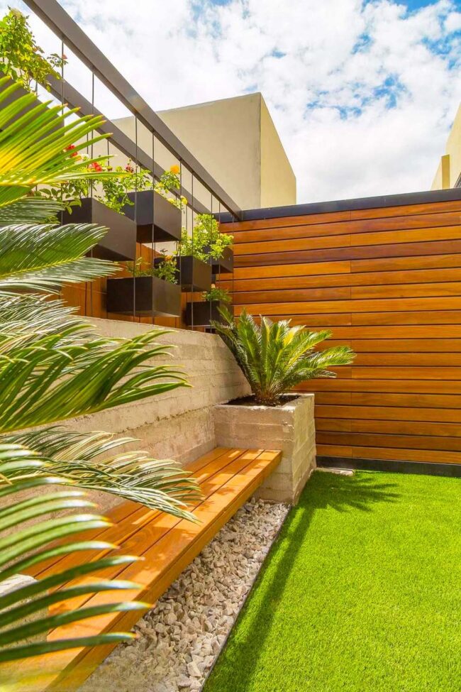 Artificial lawn mimics natural grass without demanding constant water or maintenance, making it ideal for compact city spaces.
