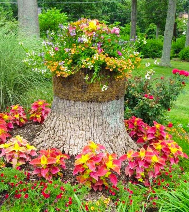 Recycling tree stumps through this creative method provides an eco-friendly solution for landscape design challenges.