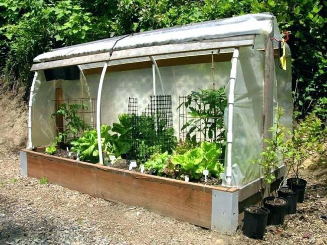 Simple PVC pipes and greenhouse plastic form the lightweight frame, allowing maximum sunlight penetration while maintaining optimal growing conditions.