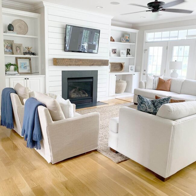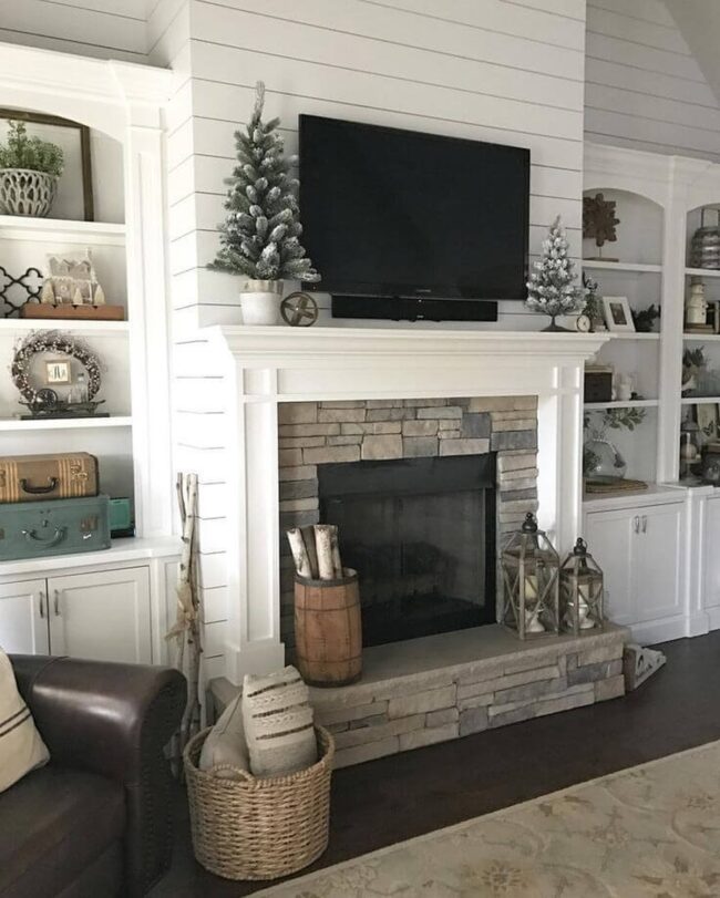 White shiplap brings stunning warmth to fireplace designs, creating an instant focal point that draws eyes across the room.