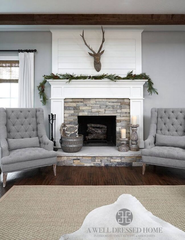 Carefully curated design elements transform an ordinary fireplace into a focal point of family gathering.
