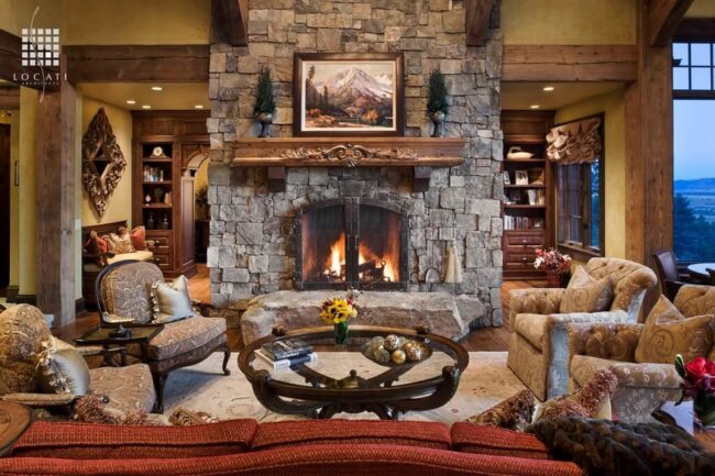 Stone fireplaces radiate timeless elegance, capturing attention with their rugged beauty and architectural grace.