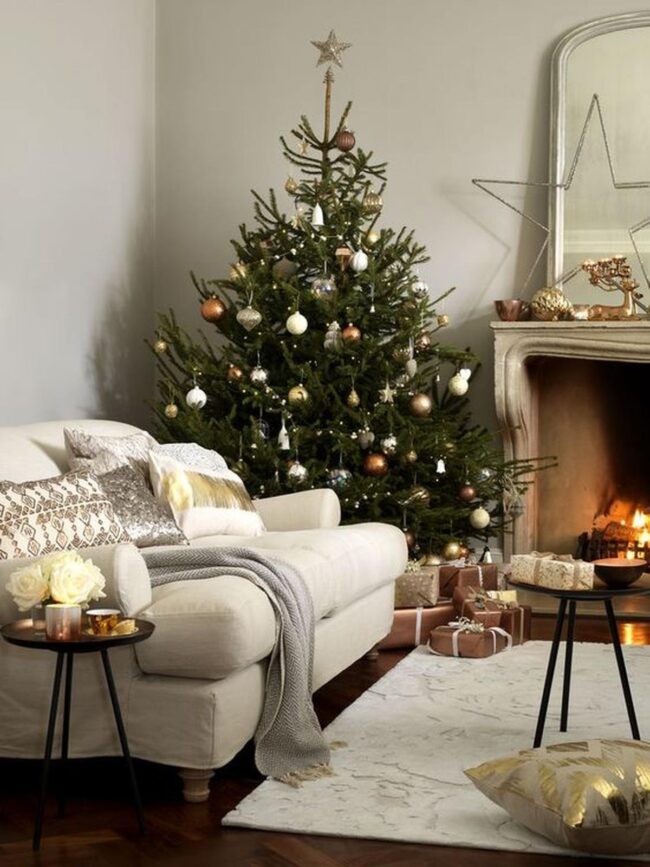 Warm copper Christmas decor introduces a soft, luxurious glow that feels inviting yet refined.