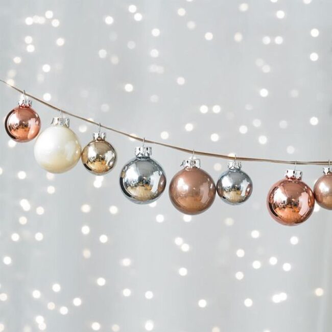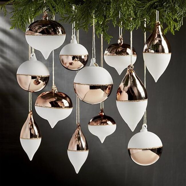 Rose gold and matte white ornaments reinvent your space with effortless sophistication, blending modern design and subtle elegance.