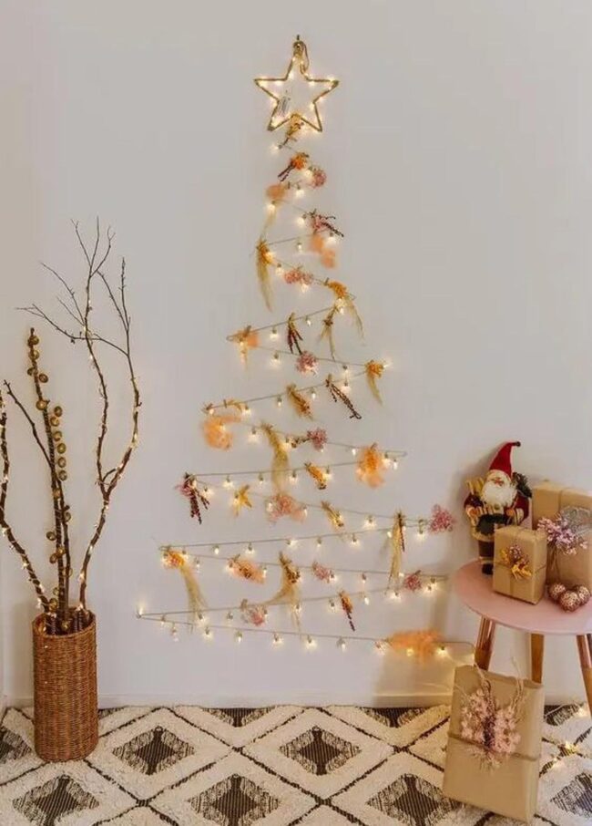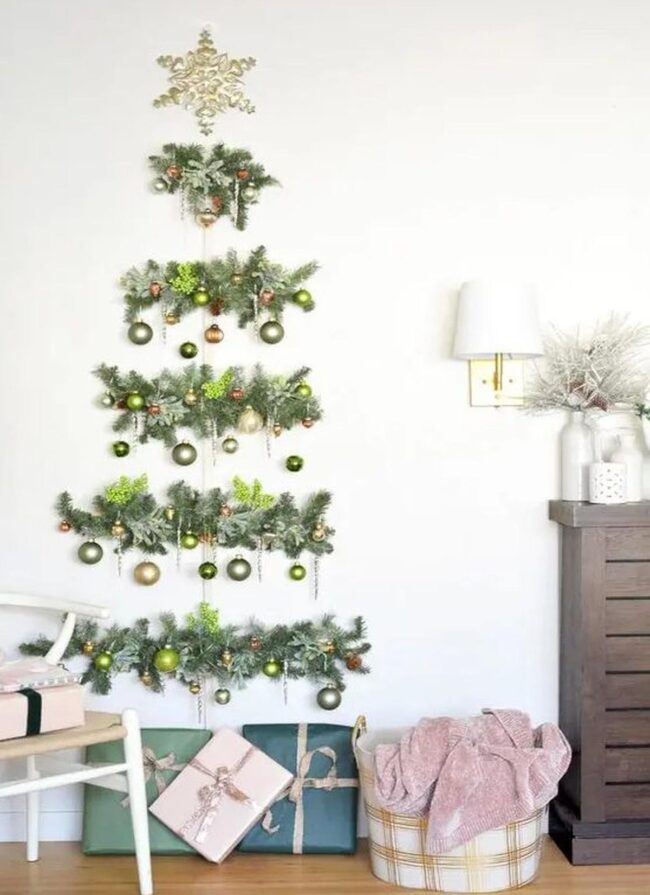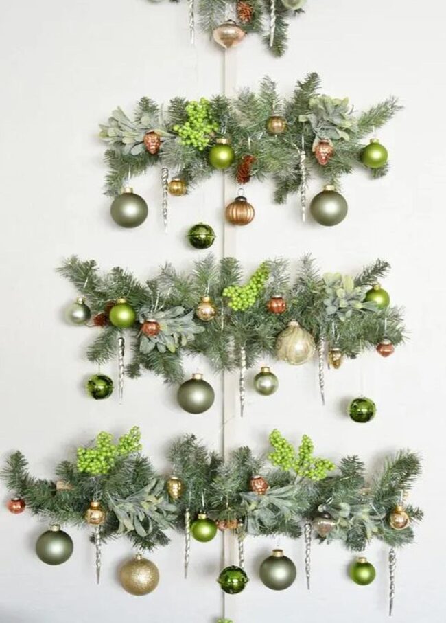 Magical wall Christmas trees provide a delightful solution when floor space is limited, but holiday spirit remains abundant.
