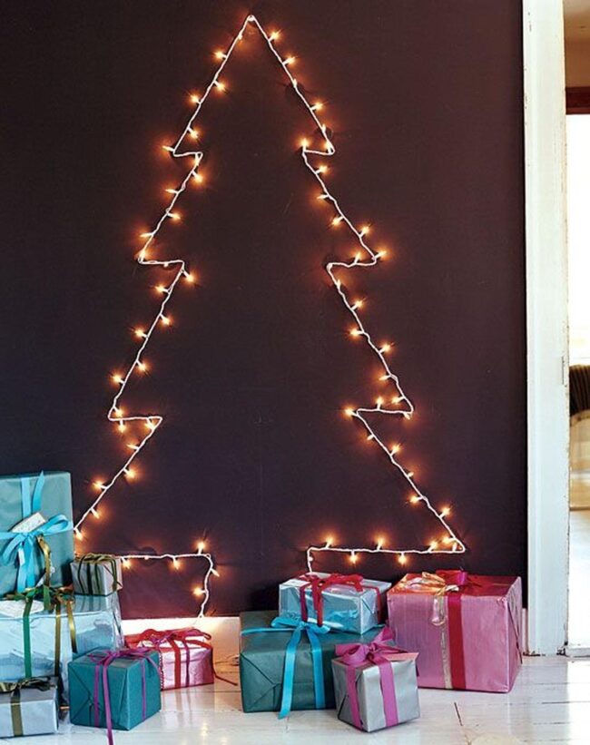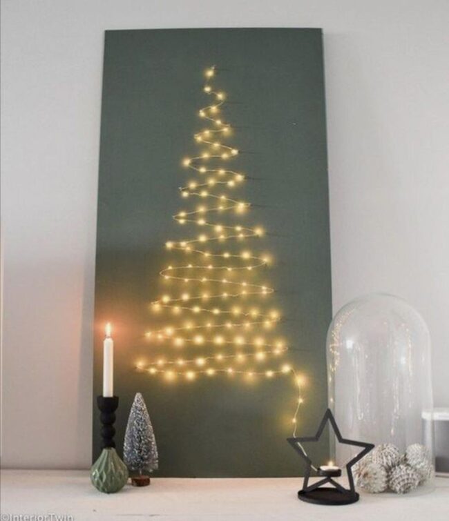 Unexpected art pieces like string light Christmas trees spark conversation, their delicate design dancing with sparkling ornaments and soft shadows.