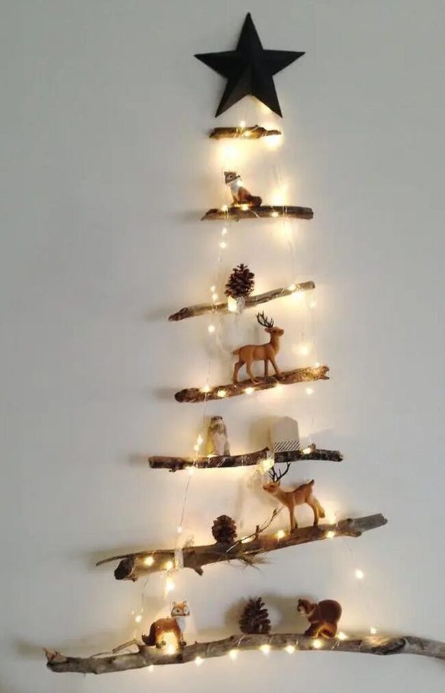 Wooden Christmas tree displays burst with holiday magic, turning ordinary walls into festive wonderlands.