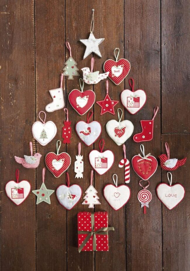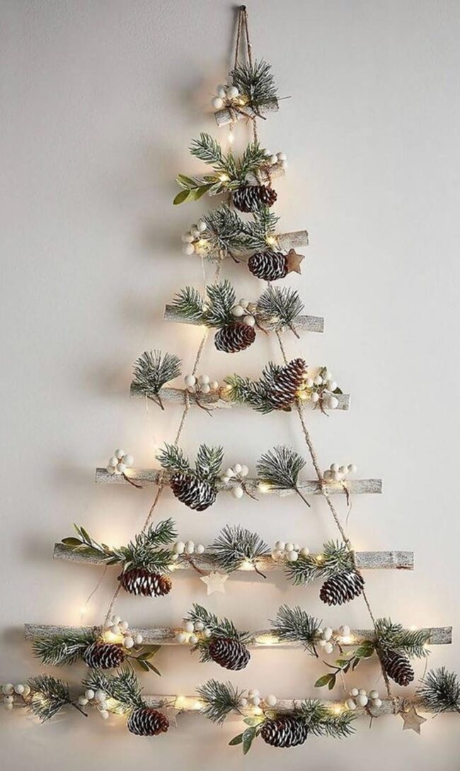Wall-mounted designs come in countless styles, from minimalist outlines to elaborate fabric creations that mimic full-sized evergreens.