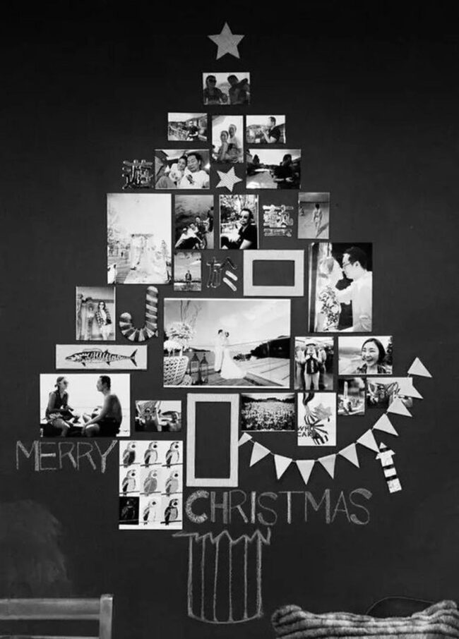 Memories burst to life on Christmas photo walls, where personal snapshots dance together in magical harmony.