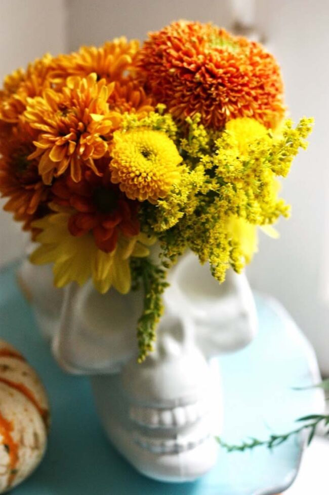 Carefully curated arrangements tell a story of seasonal transition, blending harvest aesthetics with playful Halloween themes.