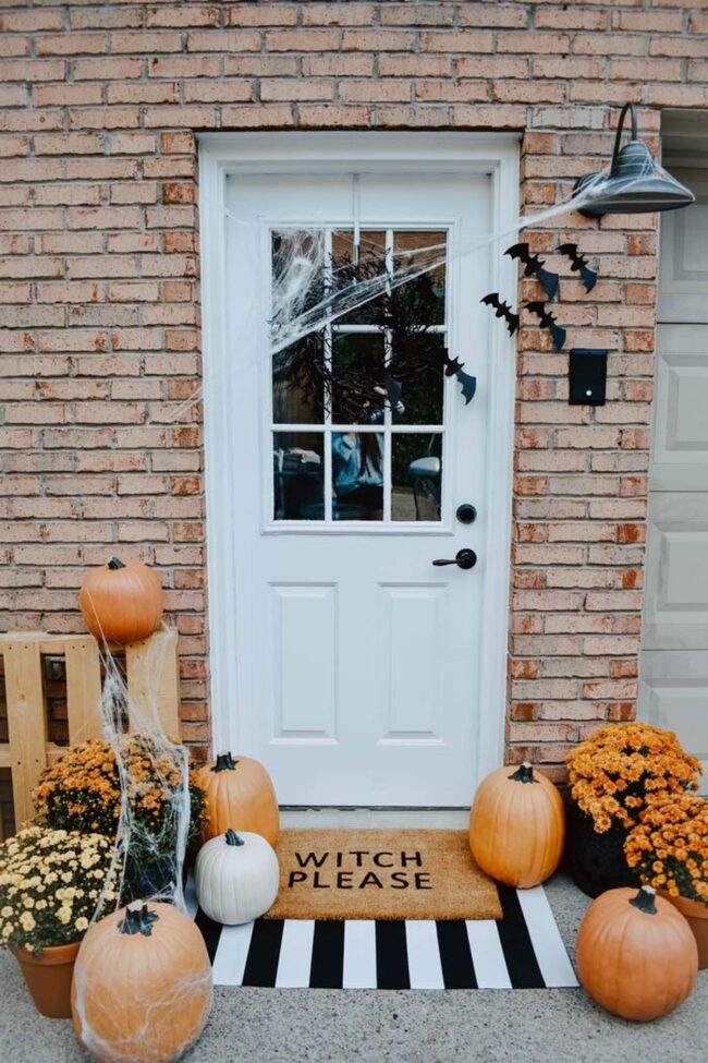 Personalized messages like "Witches Welcome" or "Boo Crew" add playful personality to entryways.