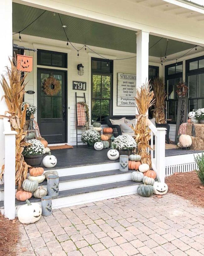 Farmhouse Halloween porches radiate enchanting charm with carefully curated elements that spark nostalgic excitement.