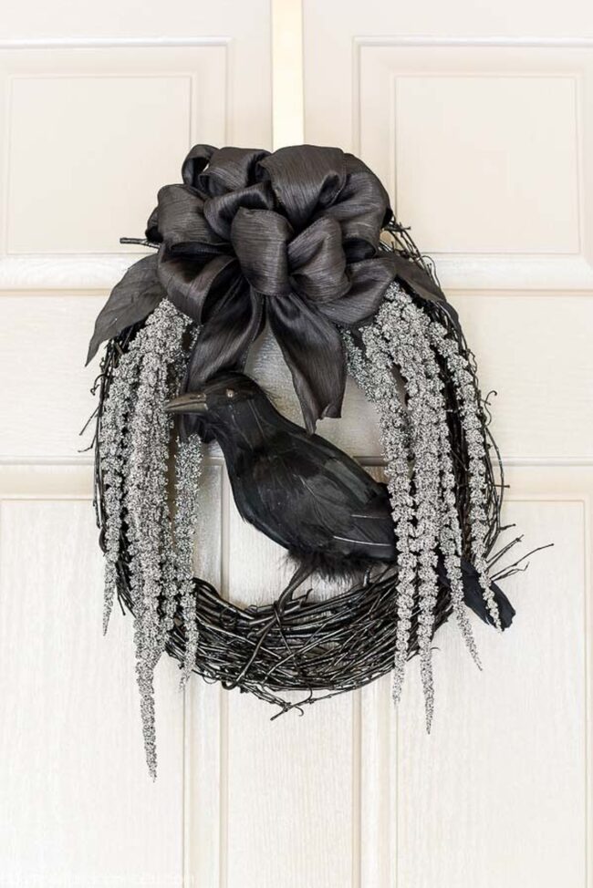 Black and white bows add sophisticated touches to classic decorative pieces, softening potential eerie elements with stylish simplicity.