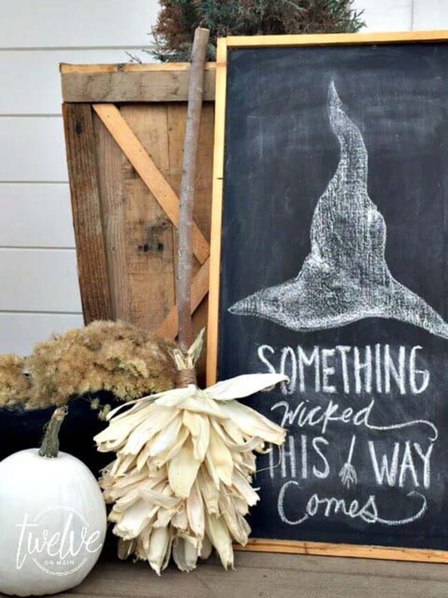 Old chalkboards offer additional opportunities for seasonal artwork with simple sketches and playful messages.