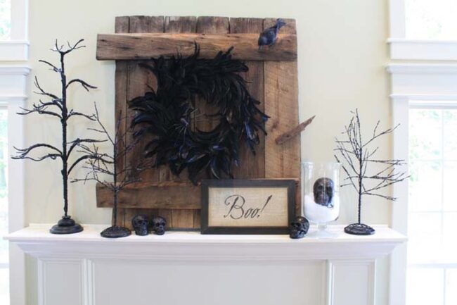 Farmhouse Halloween decor sparkles with recycled wood signs that capture spooky seasonal spirit.