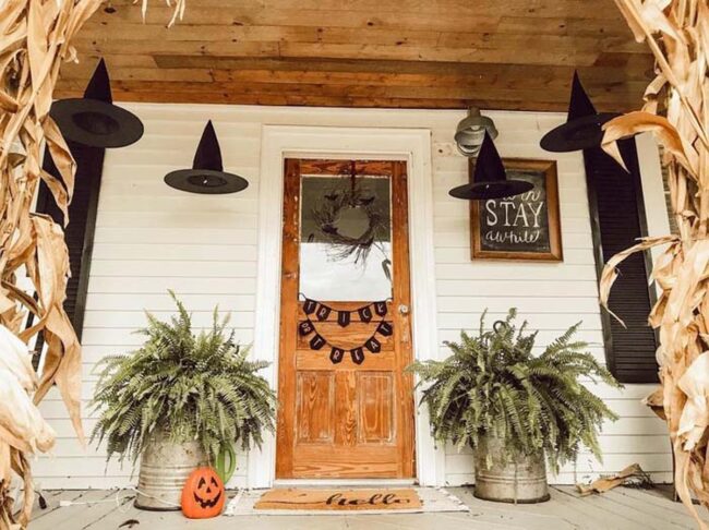 Pumpkins, dried corn husks, distressed signs, and handcrafted wreaths become the storytellers of this delightful seasonal transformation, weaving together comfort and mysterious Halloween energy.