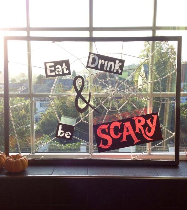 Simple techniques like strategic painting and strategic hanging make this Halloween sign pop.