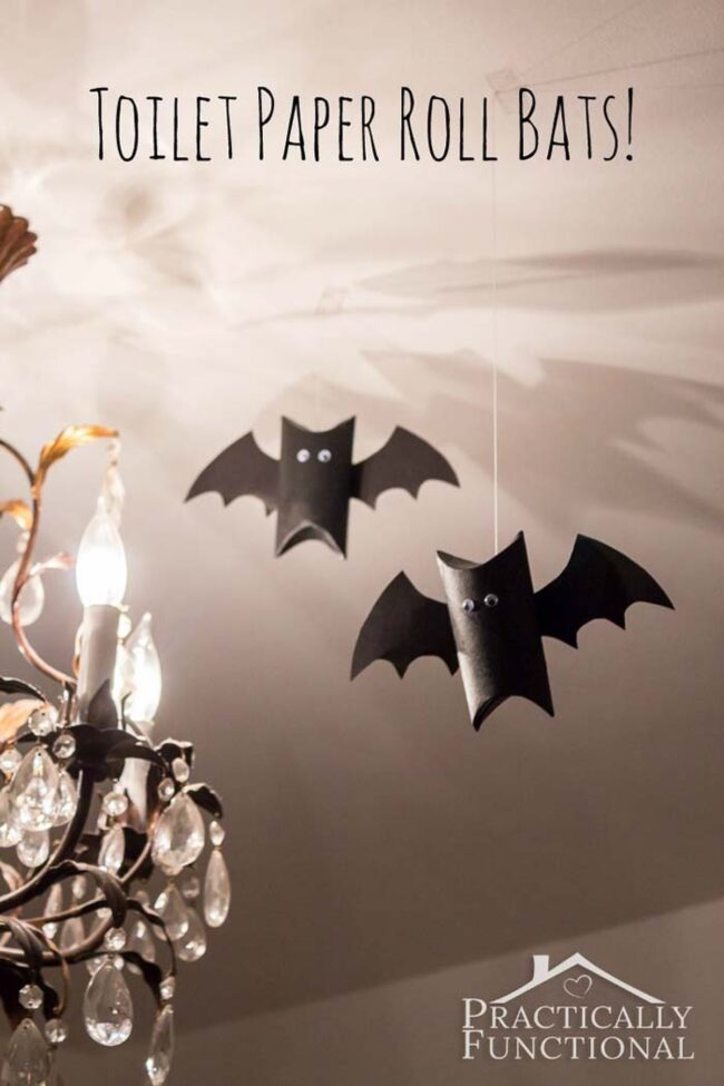 Spooky Halloween bat decorations emerge from simple toilet paper rolls, bringing whimsical charm to seasonal celebrations.