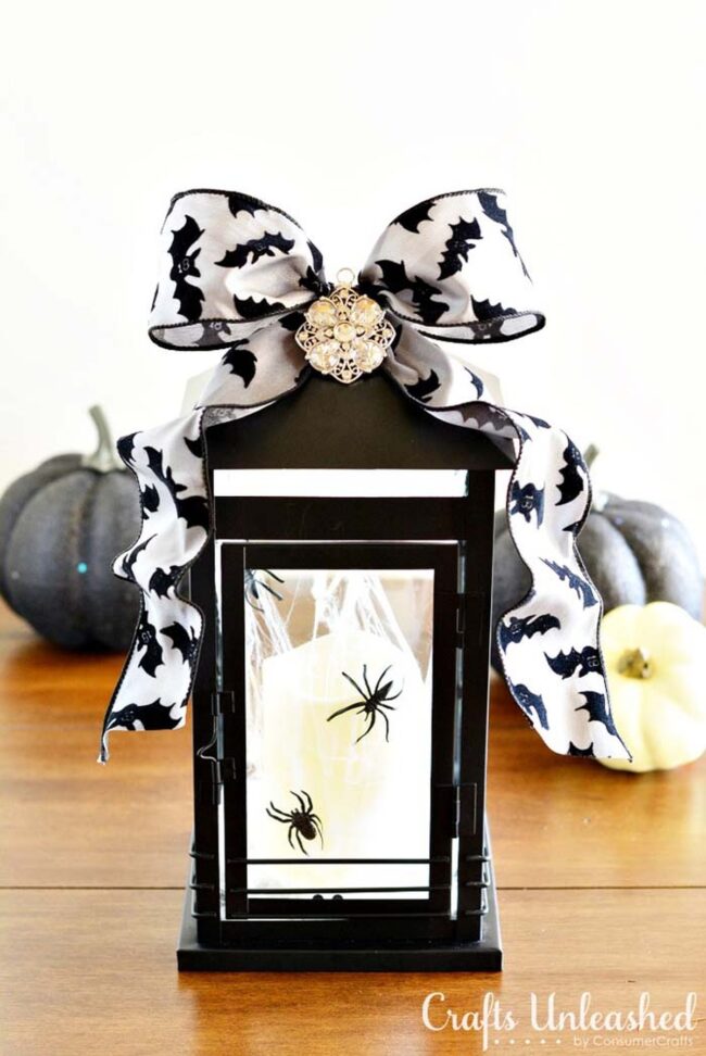 Metal brooch embellishments crown each lantern, elevating its sophisticated design beyond traditional Halloween decorations.