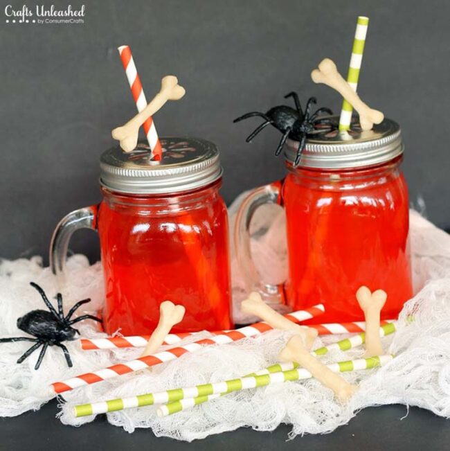 Crafty hosts can drill holes through jar lids, allowing easy straw insertion for maximum creepy impact.