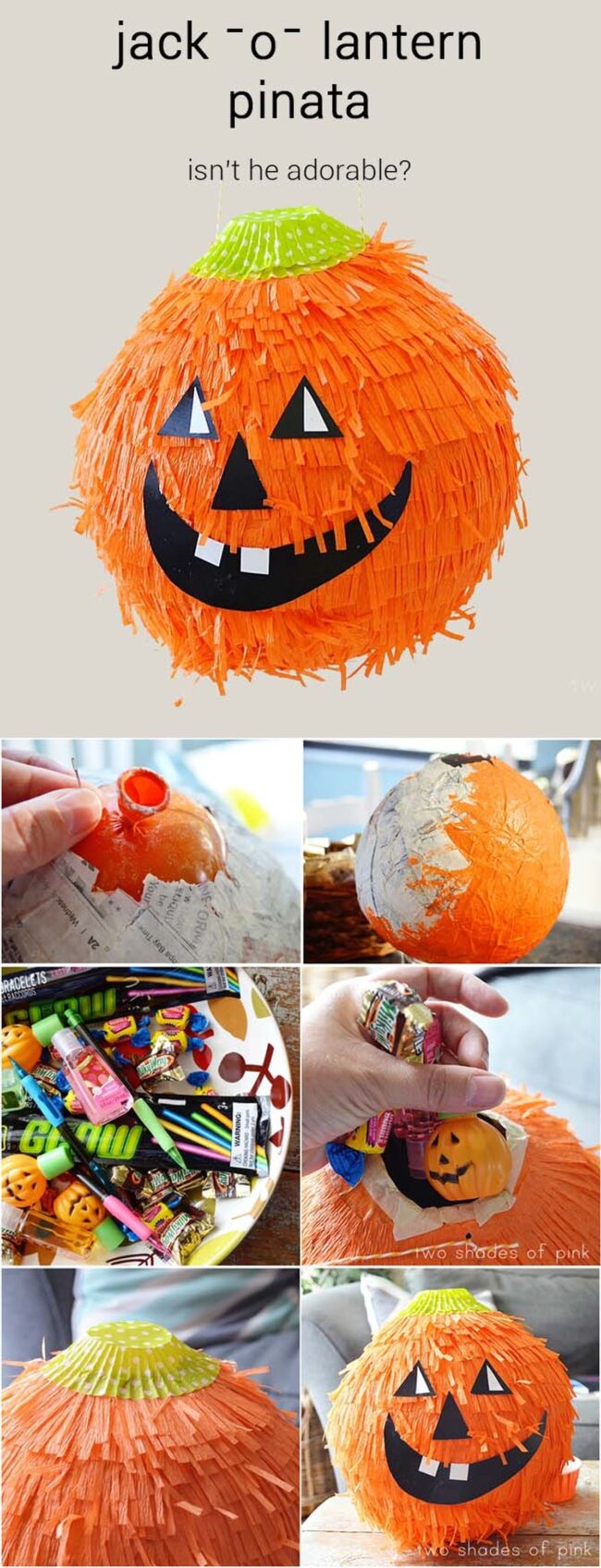 Creative party planners can personalize the piñata by cutting black construction paper for expressive facial features that capture Halloween excitement.