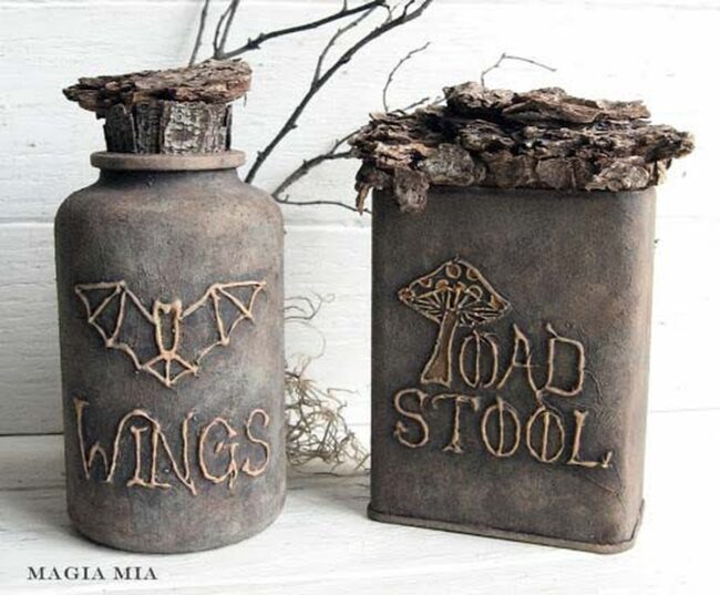 Metallic or dark-colored jars work best for capturing the sinister mood of the celebration.