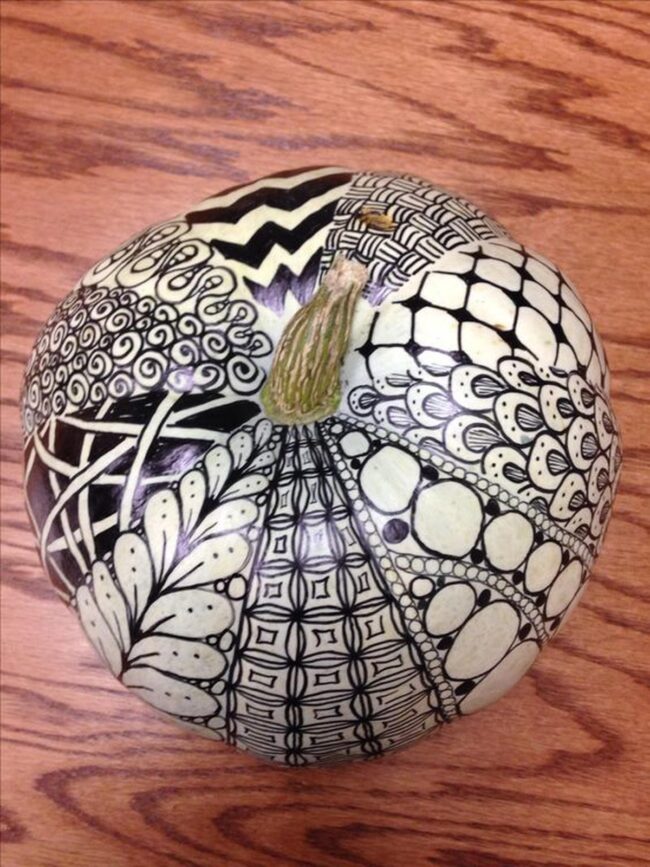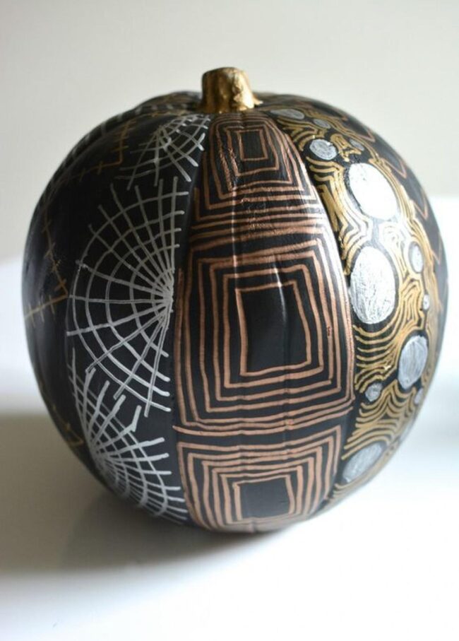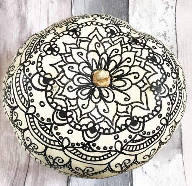 Stunning black and white patterns adapt an ordinary pumpkin into an extraordinary art piece that catches every eye.