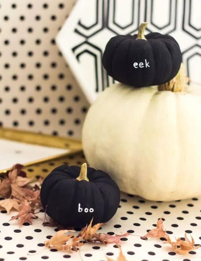 Halloween decorations burst with personality when dark and white pumpkins combine unexpected charm.