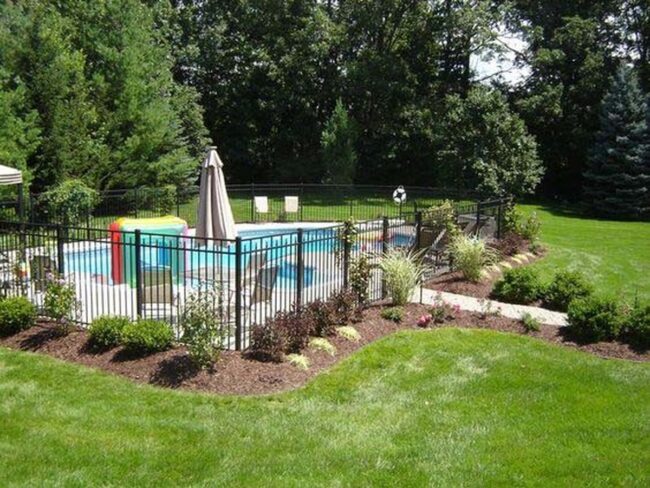 Pool safety meets aesthetic delight with floral mulch fence designs that elevate backyard landscapes.