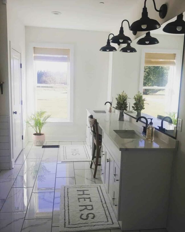 Matching marble vanity tops amplify the room's refined aesthetic, making everyday moments feel more indulgent.