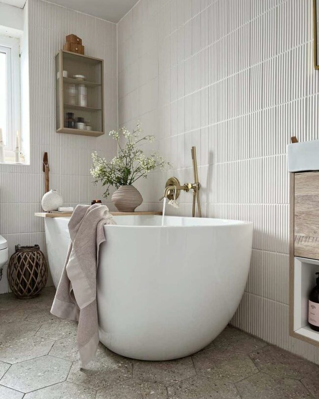 Neutral color palettes work particularly well, allowing the tile shape to become a focal point.