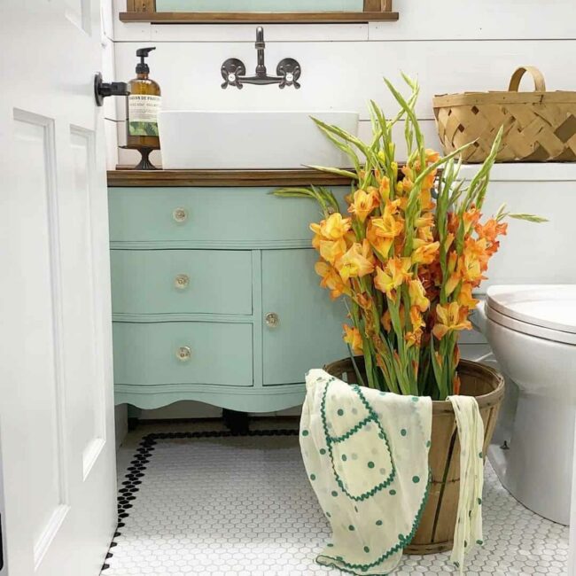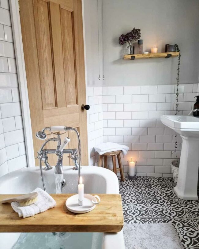 Vintage checkered tiles deliver an instant charm to bathroom spaces, instantly elevating the entire room's aesthetic.