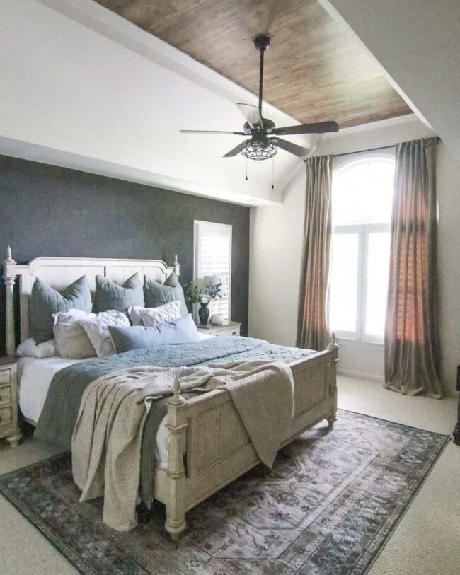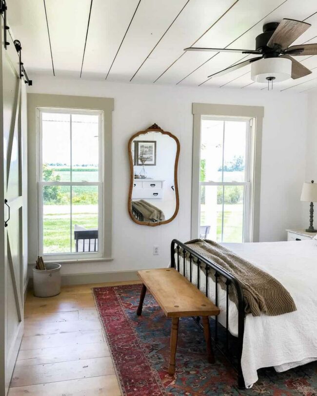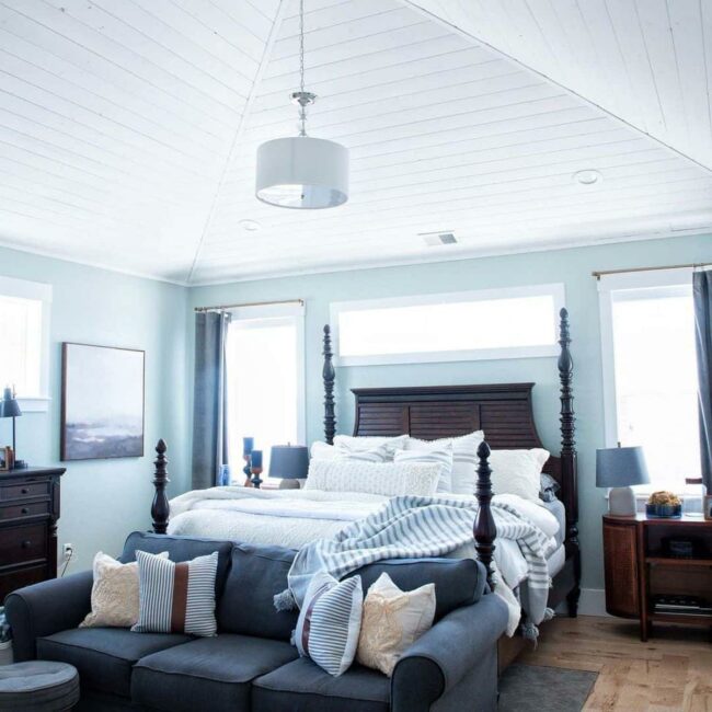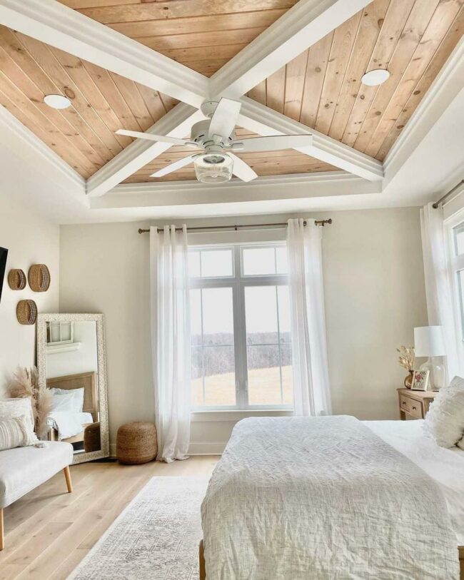 White Shiplap Ceiling Illuminates Bedroom Sanctuary