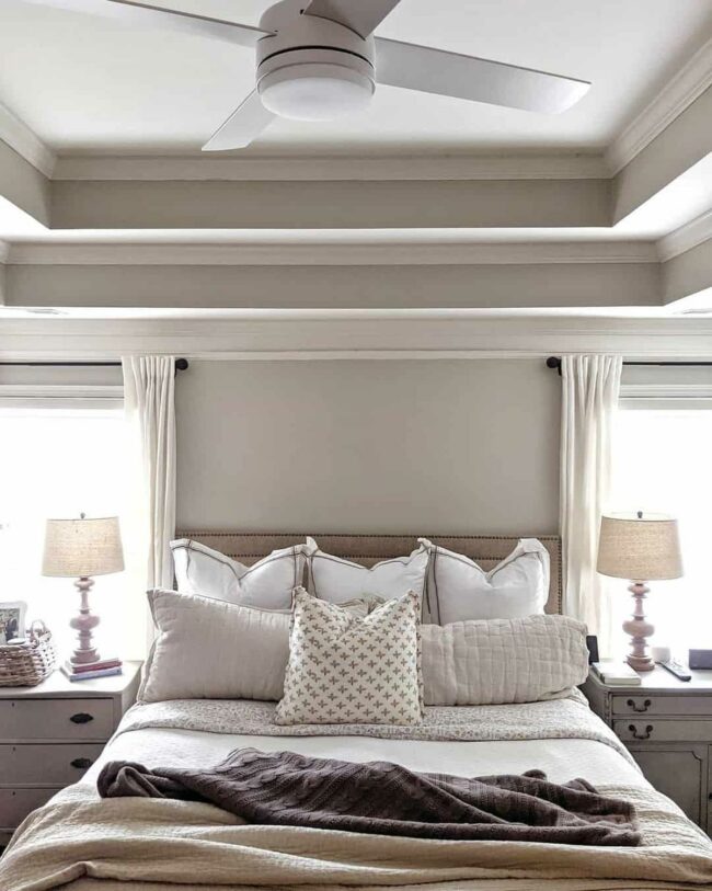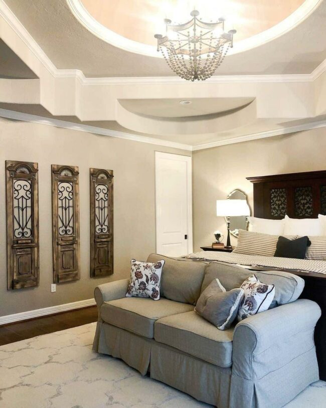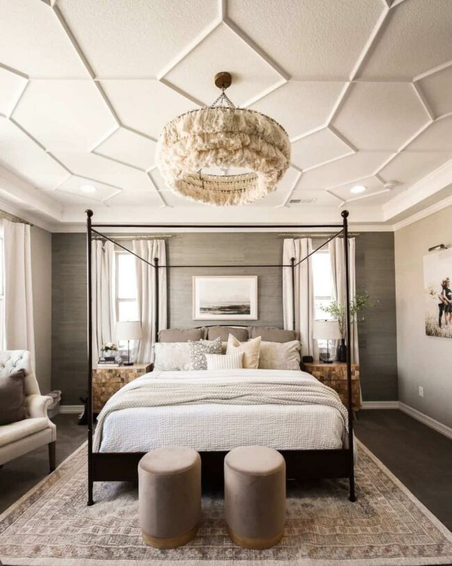 Dropped edge ceilings elevate bedroom design with unexpected depth and visual interest.