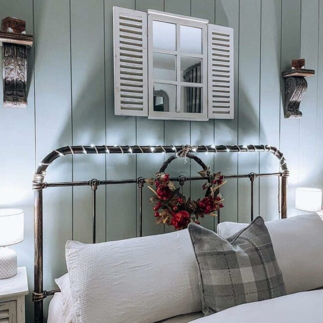 Elegant lamps beside the bed whisper glamorous cottage vibes with understated sophistication.