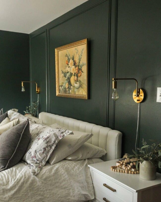 Golden Sconces Green Sanctuary Luminous Minimalist Bedroom