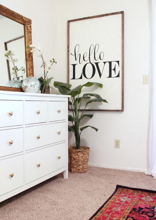 Simple typography enhances room character without overwhelming existing decor.