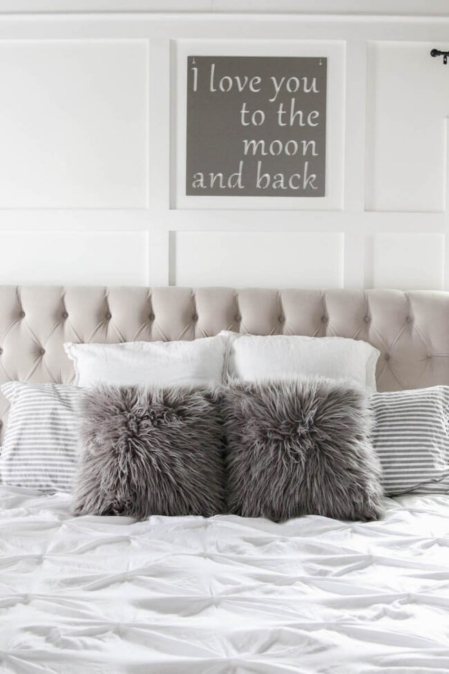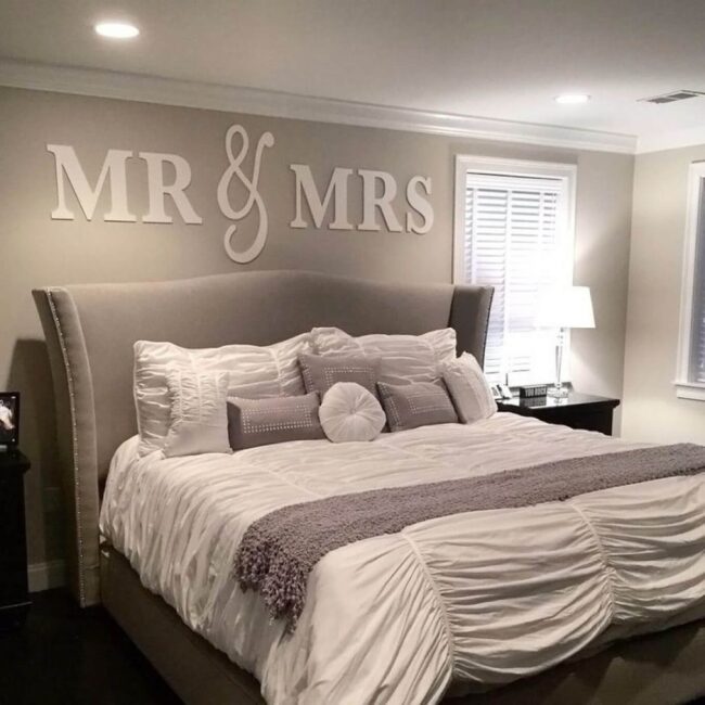 Personal master bedroom designs speak volumes about individual style, with elegant white lettering leading the visual charge.