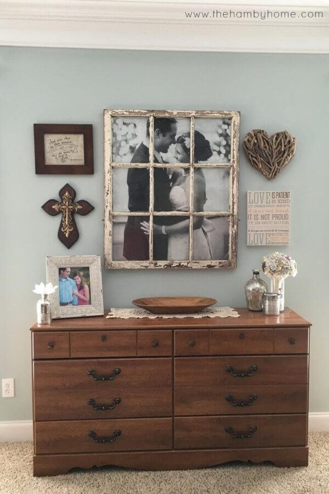 Window frames capture hearts with their vintage charm, making your accent wall pop like a designer's masterpiece.
