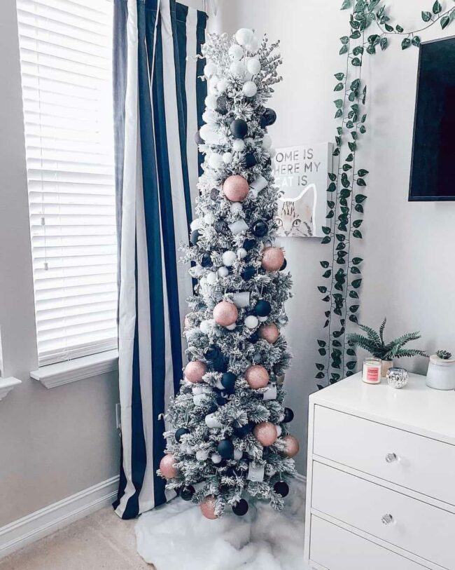 Pencil trees bring sophisticated holiday magic to small spaces, effortlessly standing tall with minimal footprint.