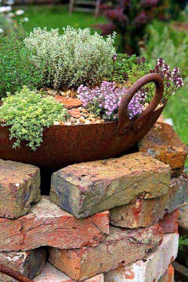 Old brick planters radiate rustic garden elegance with minimal effort and maximum impact.
