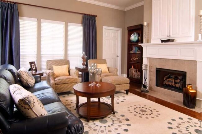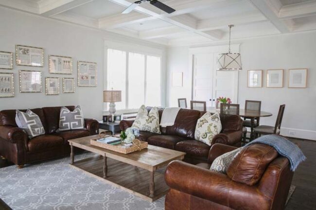 Leather furniture adds luxurious texture that elevates the overall room design.