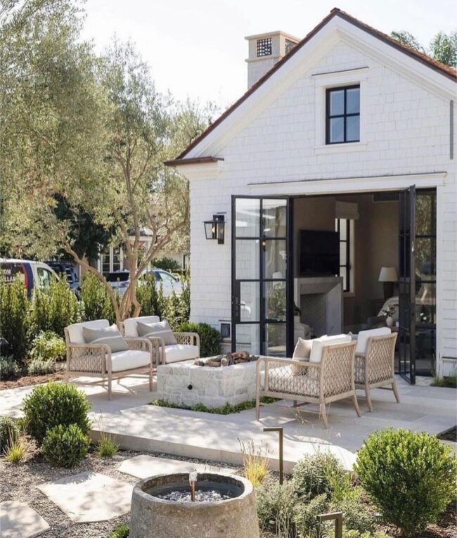 Neutral color palettes create visual harmony, making small spaces appear larger while complementing existing landscaping.