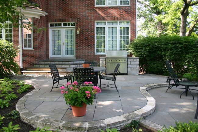 Thoughtful border designs connect the patio to surrounding gardens, making the space feel like a natural extension of the home.