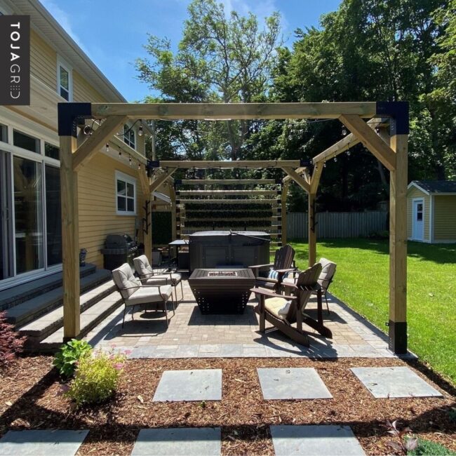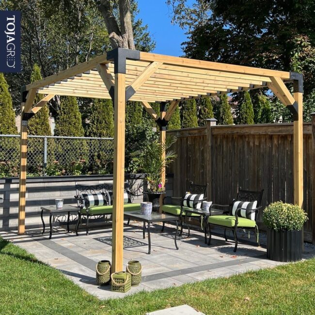 Cedar wood brings rich, natural warmth to these stunning overhead structures, creating an inviting sanctuary for relaxation and entertaining.