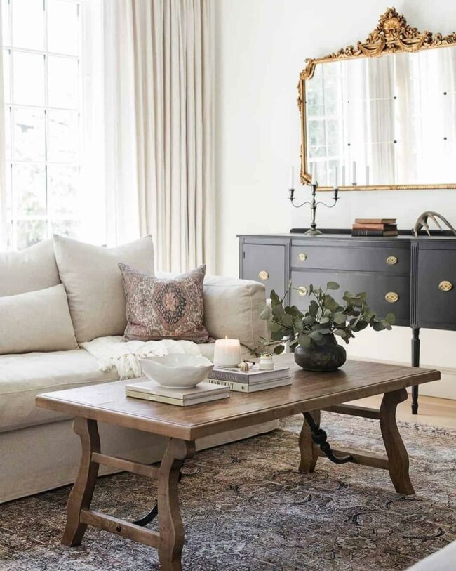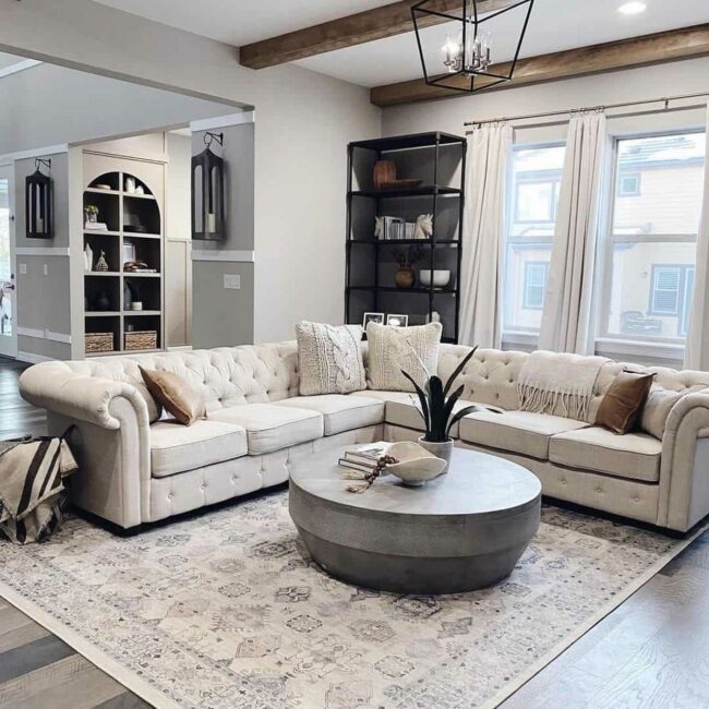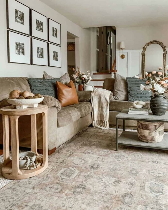 Neutral rugs provide calm foundations that seamlessly blend furniture pieces.