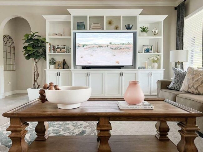 Wooden trays radiate charm on coffee tables, perfectly displaying curated decor pieces that tell a story.